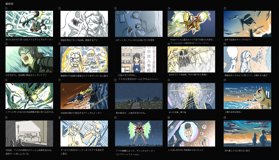 プロットのやりとりの中で、「映画で戦うアニメ」をコンセプトに据え、